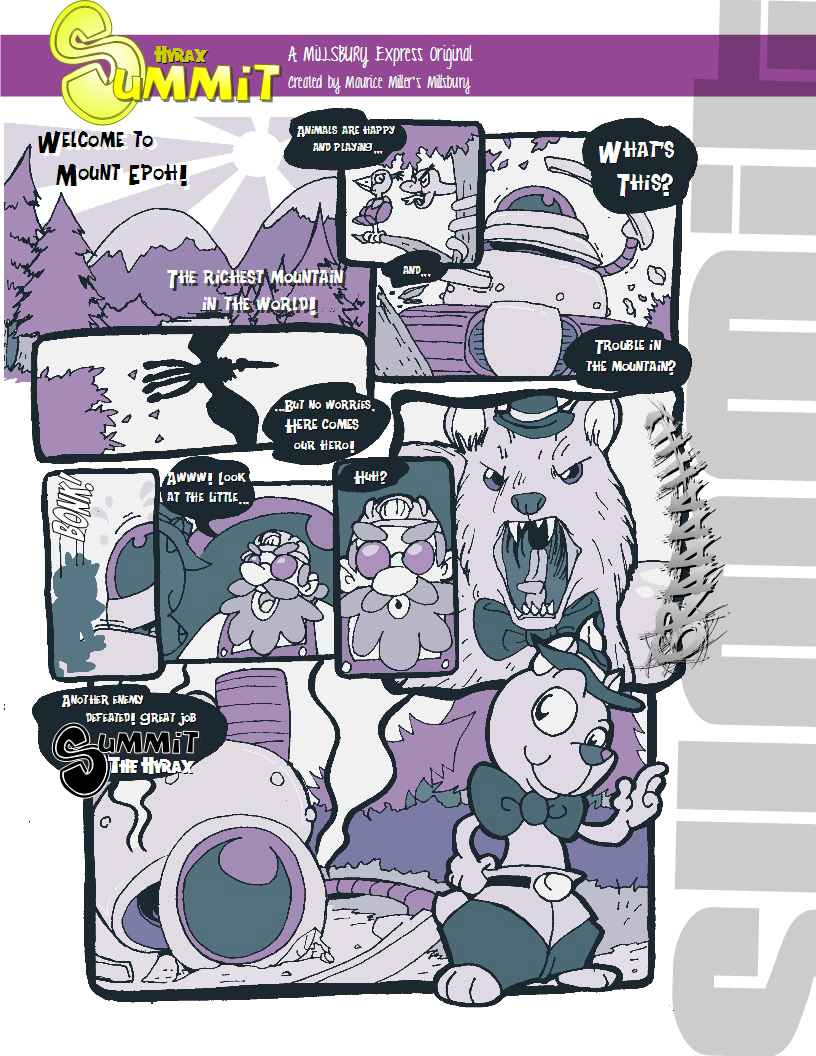 A ink to color I did of a comic strip of my own original character "Summit the Hyrax"