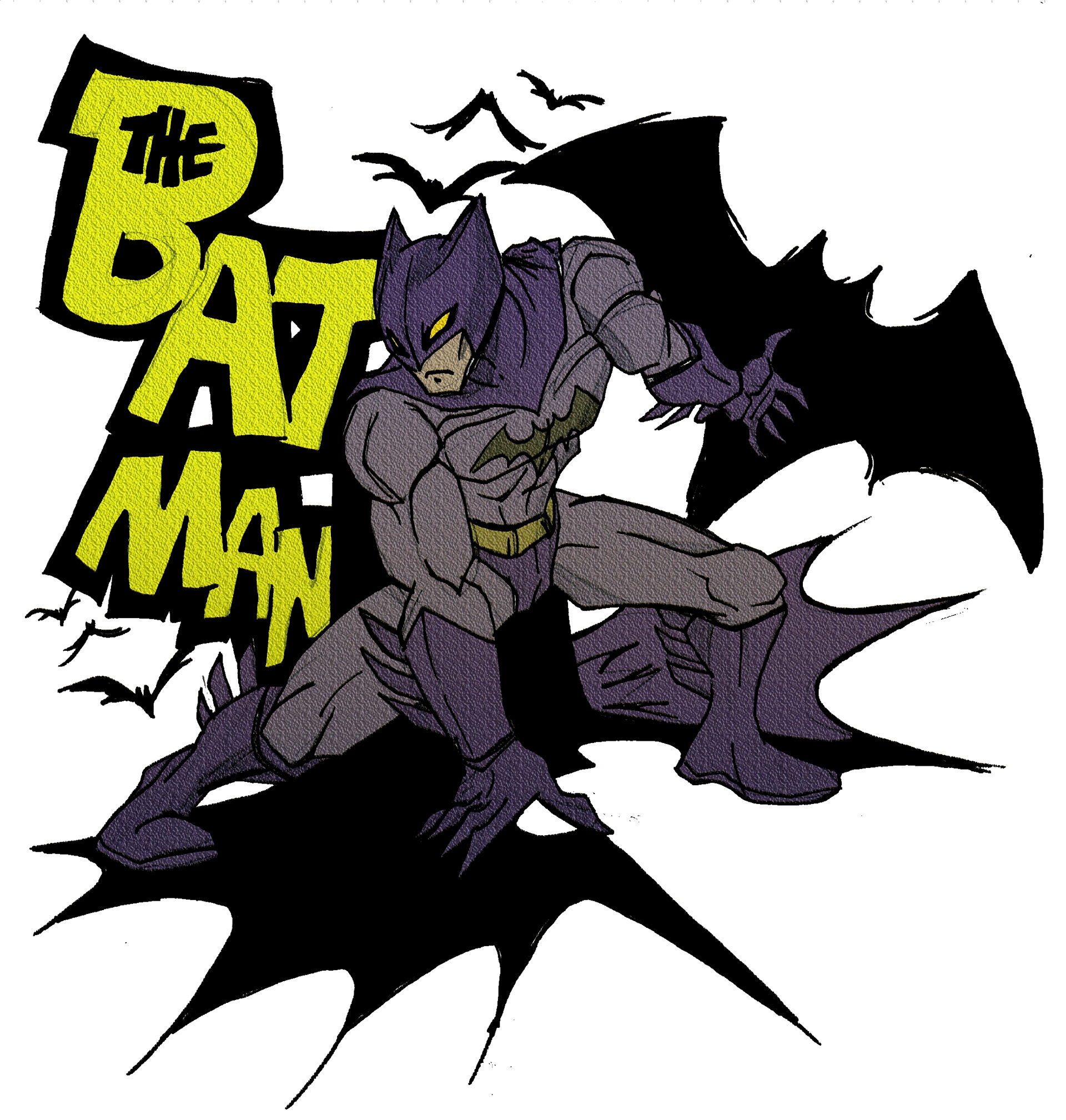 A drawing of Batman I hand drawn, scanned then colored.
